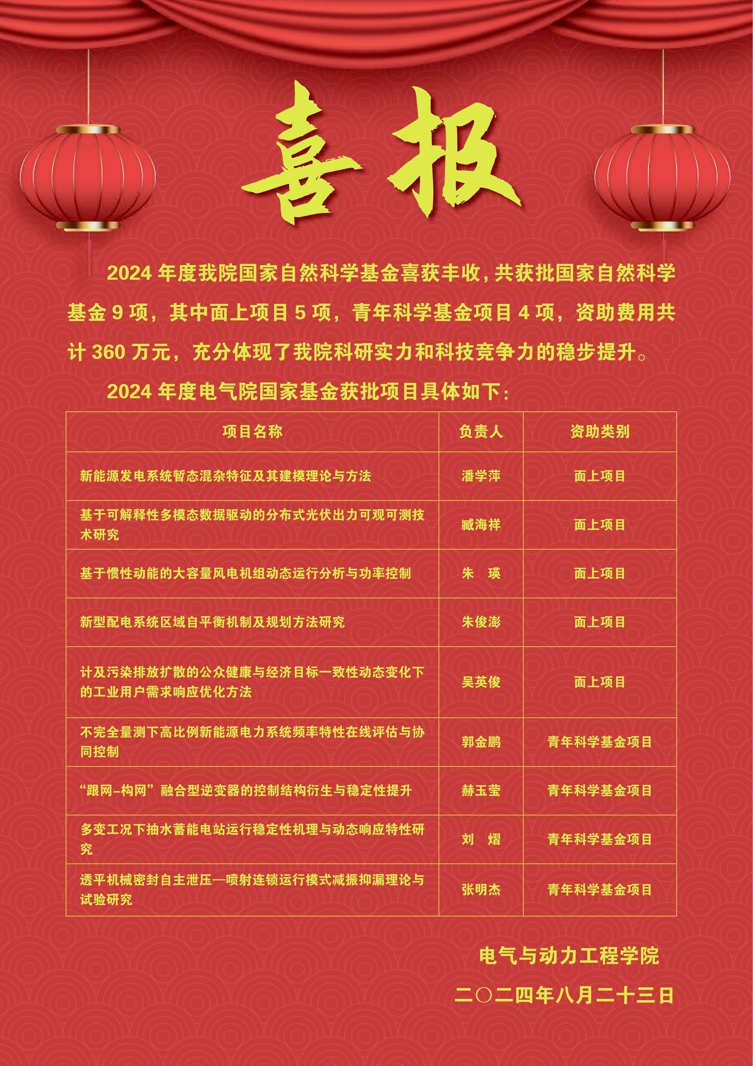 喜报:2024年度我院国家自然科学基金喜获丰收