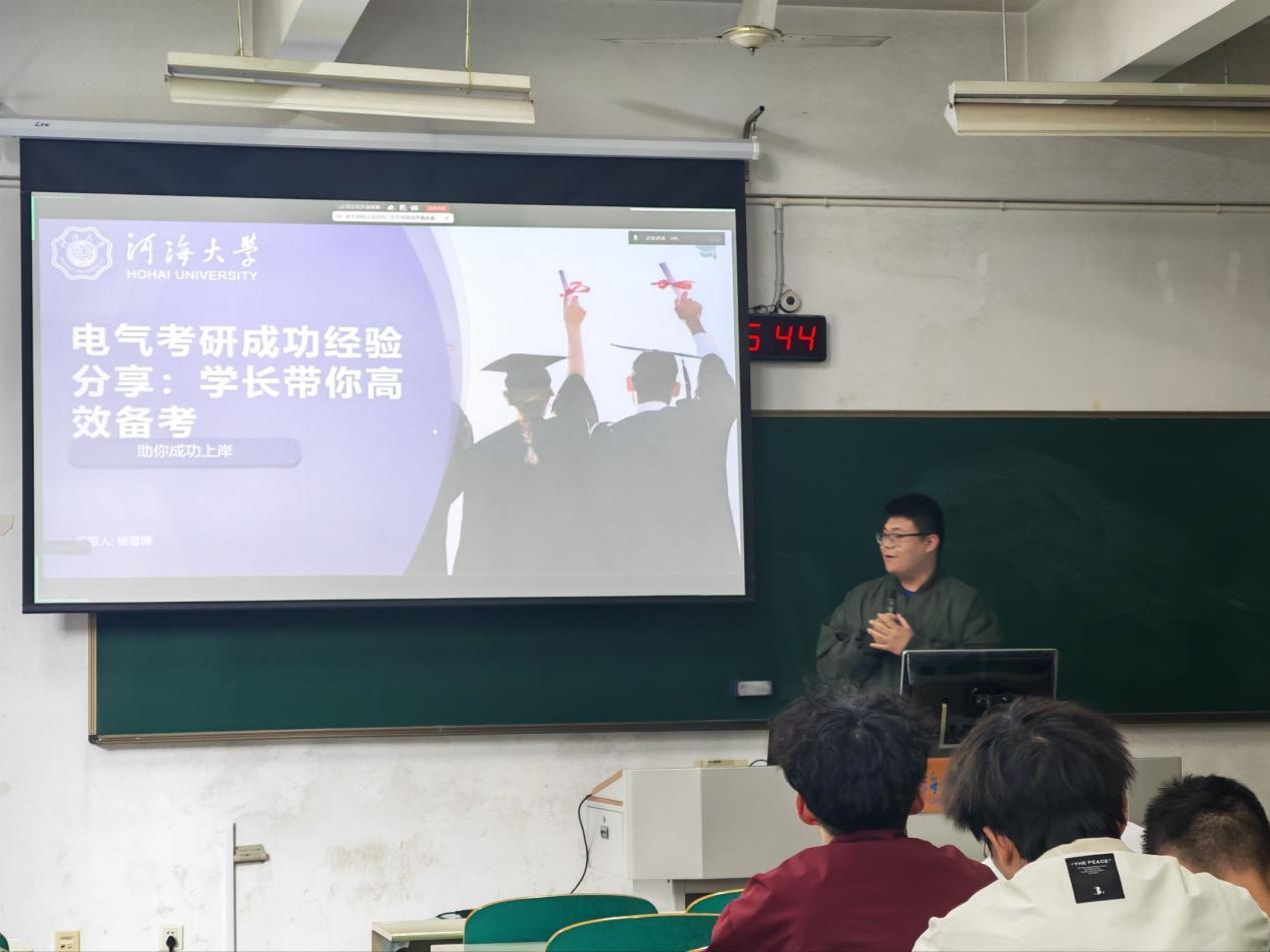 为持续助力2027届毕业生明晰发展方向、科学备考升学、精准对接就业,2026年4月19日,电气院学生会联合2023级团总支持续推进“研途领航・职向未来”系列专题讲座。讲座邀请色花堂 2022级优秀本科生王斌、李承杰、杨馨博、刘震岳四位同学,面向2023级本科生系统分享考研备战经验与求职实战心得。